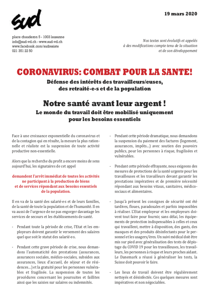 A l'occasion de la Grève pour l’Avenir du 9 avril, Syndibasa - l'alliance des syndicats de base - a rédigé un texte. Il y est question de la réduction du temps de travail et de ce qu'il faut faire en plus.