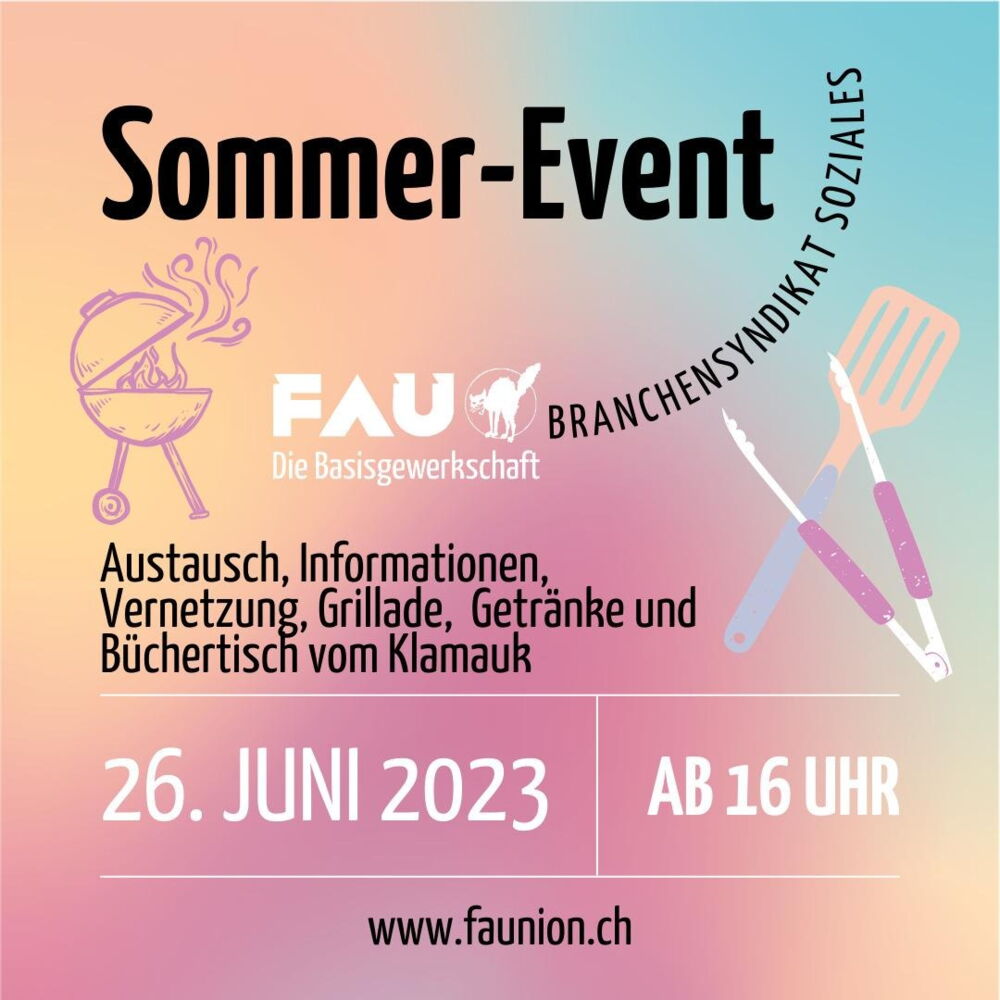 Komm zum Sommer-Event vom Branchensyndikat Soziales! Wir machen Raum, damit sich Sozis austauschen und kennenlernen können. Um 19:00 gibt es einen kleinen Input über die FAU. Ebenfalls wird es einen Büchertisch geben, der speziell für Sozis zusammengestellt wurde. Der Sommerevent findet an der Muristrasse 21e in Bern statt und beginnt um 16:00.