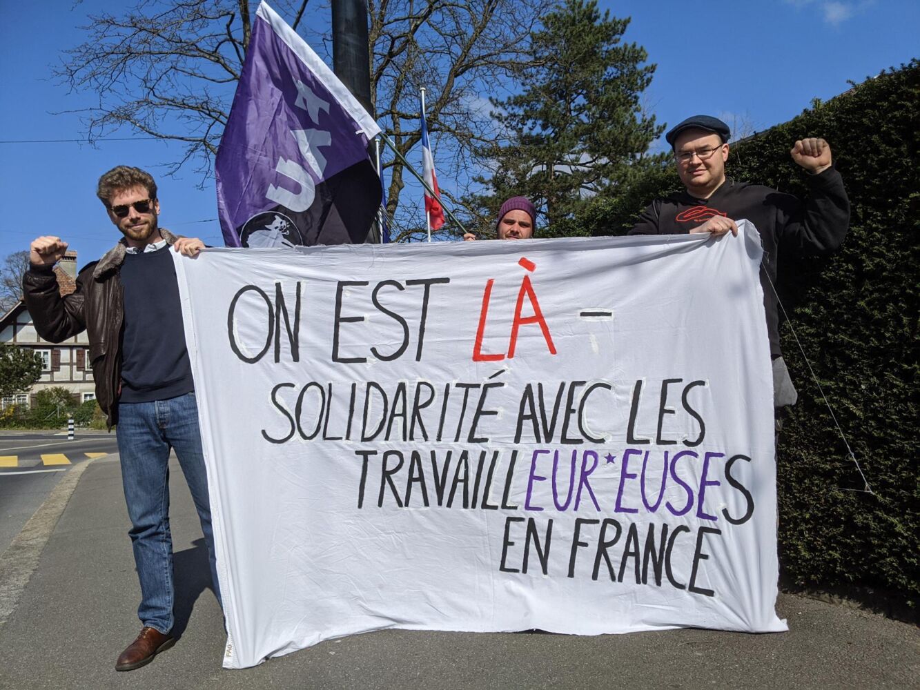 Die Proteste gegen die arbeiter:innenfeindliche Rentenreform in Frankreich reissen nicht ab. Die FAU Schweiz solidarisiert sich mit der Bevölkerung. Am 19. April hat eine Delegation einen Protestbrief bei der französischen Botschaft abgegeben. Hier kannst du den ganzen Brief lesen.
